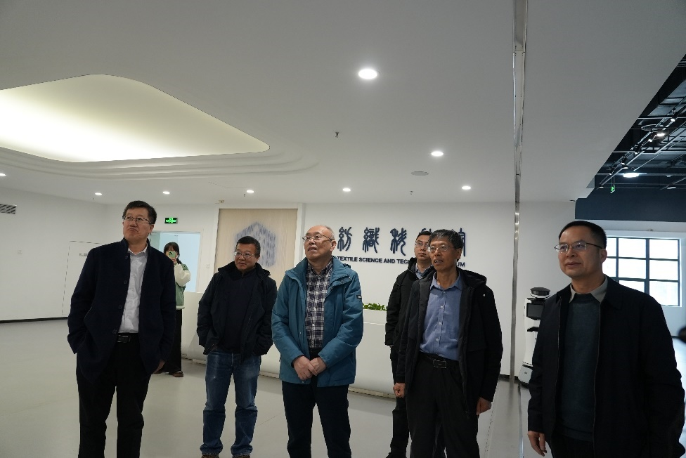 会前,专家组集体参观了集中展示学校办学特色与科研成果的纺织科技馆。在参观过程中,专家们不仅认真倾听讲解、察看展陈,更以学术视角“边看边议”,围绕展品背后所涉及的化学、化工问题展开深入讨论。