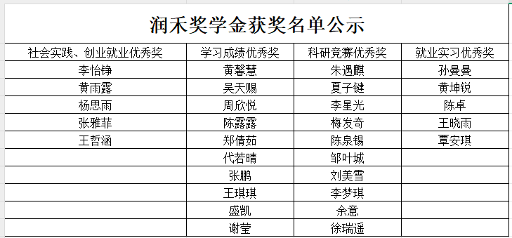 ”)捐资设立的资助品学兼优的在校大学生完成学业的专项基金,旨在激发大学生的学习热情及参与科研的积极性,营造优良学风,培养学生成为知识、能力、素养三位一体的化妆品行业专门人才,使企业得到人才,学生得到技能,学校得到发展,实现学校与企业“优势互补、资源共享、互惠互利、共同发展”的双赢结果。现将2024-2025润禾奖学金获得者名单公示如下: