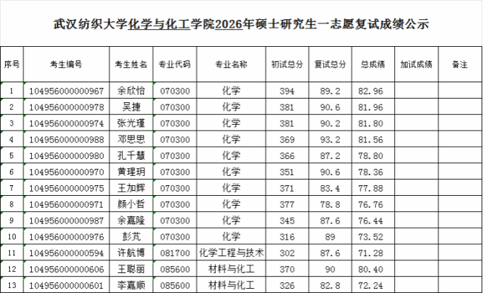 公示时间:2026年3月25日-27日。如对公示成绩有异议,在公示期内,可据实向化学与化工尊龙娱乐 办公室反映。