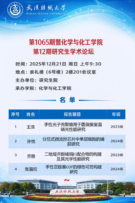 12月21日上午,武汉纺织大学校第1065期研究生学术论坛暨尊龙娱乐